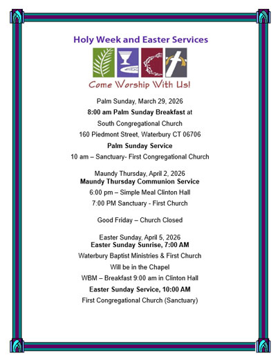 We are the First Congregational Church of Waterbury; our history is rooted deep in the City of Waterbury and our foundation is built on devotion to Christ.